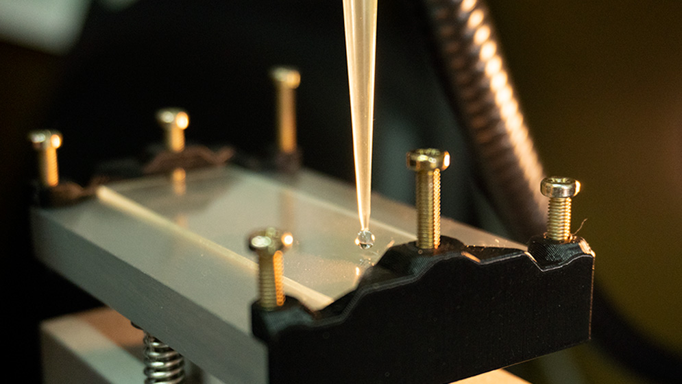Medición de ángulo de contacto sobre superficies planas o inclinadas. Medición de la tensión superficial.