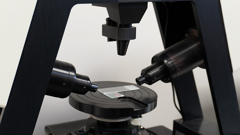 Medición del espesor e índice de refracción de películas transparentes de espesor microscópico.
